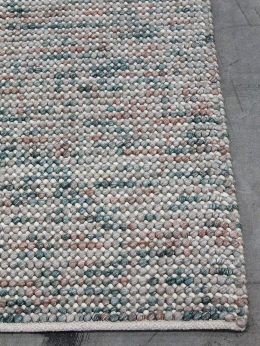 Handwoven 100% wool rugs in a loop-pile textured weave.